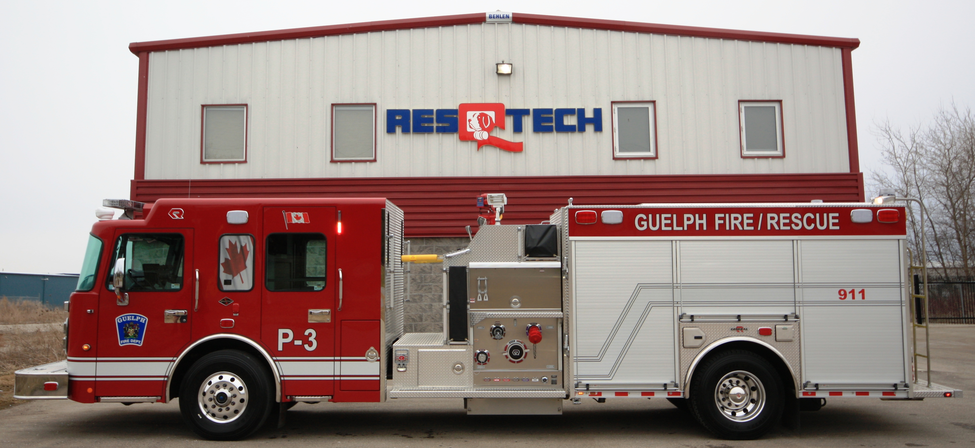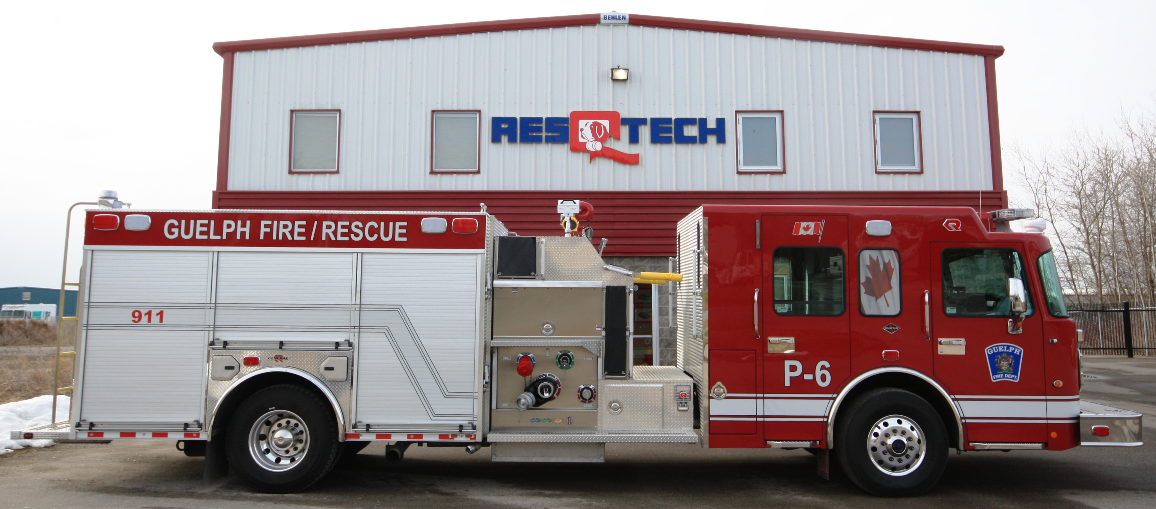 Accessories: Rosenbauer EXT Body, Air Conditioning, Foampro 2001 Foam System, Driver and Officer Vista Screens, Hydraulic Hosebed Covers, 200ft Electric Cord Reel and an Electric Elkhart Vulcan Monitor
